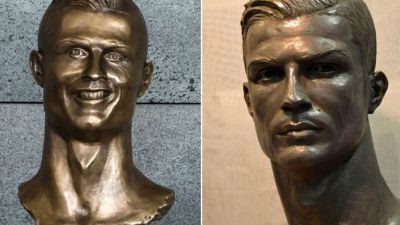 وأثار تمثال نفذه أحد الفنانين لقائد المنتخب البرتغالي الاستياء بين عشاق "الدون" ورونالدو نفسه نظراً لأنه لم يكن موفقاً ولا يشبه هداف مانشستر يونايتد السابق.