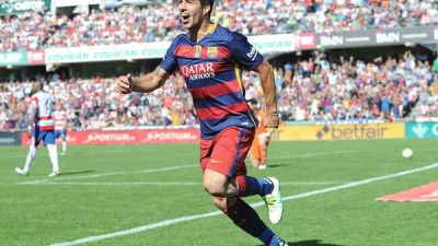 وسجل سواريز ثلاثة أهداف (هاتريك) السبت ليقود برشلونة إلى فوز رائع 3-0 على غرناطة متوجاً جهوده وجهود الفريق بلقب الدوري بعدما أسدل الفريق الكتالوني الستار على مسيرته الموسم الحالي محافظاً على فارق النقطة التي تفصله عن منافسه التقليدي العنيد ريال مدريد الوصيف.