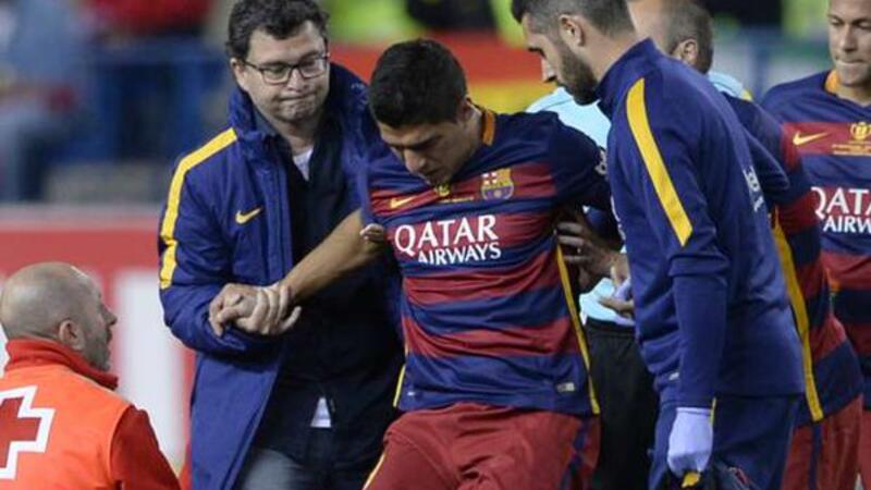 تعرض نجم برشلونة وهدافه الأول لويس سواريز لإصابة موجعة خلال نهائي كأس ملك إسبانيا أمام إشبيلية، إذ أرغمته الآلام في فخده على مغادرة ملعب فيسنتي كالديرون في الدقيقة 56 في اللقاء الذي انتهى بفوز البارسا بهدفين دون رد.