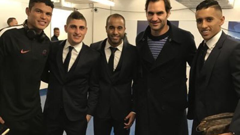 وعلى الرغم من هزيمة بطل الدوري السويسري في اللحظات الأخيرة، إلا أن الفائز ببطولة غراند سلام 17 مرة زار غرفة خلع ملابس العملاق الباريسي، والتقط بعض الصور مع الرباعي تياغو سيلفا وماركو فيراتي ولوكاس مورا وماركينيوس.