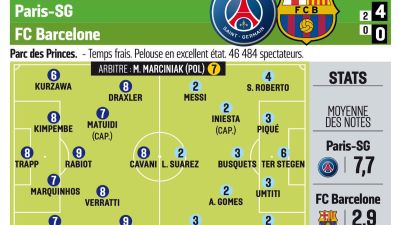 بدورها، ألقت صحيفة "ليكيب" الفرنسية الضوء على تقييم لاعبي كلا الفريقين، فمنحت ميسي ورفاقه درجتين أو ثلاثة من عشر درجات لكلٍ منهم في التقييم العام باستثناء تير شتيغين الذي نال 6 نقاط، وهو أمر لم يحدث من قبل، حيث لم يسبق للصحيفة الفرنسية الشهيرة أن منحت "ليو" هذا التقييم المتواضع.