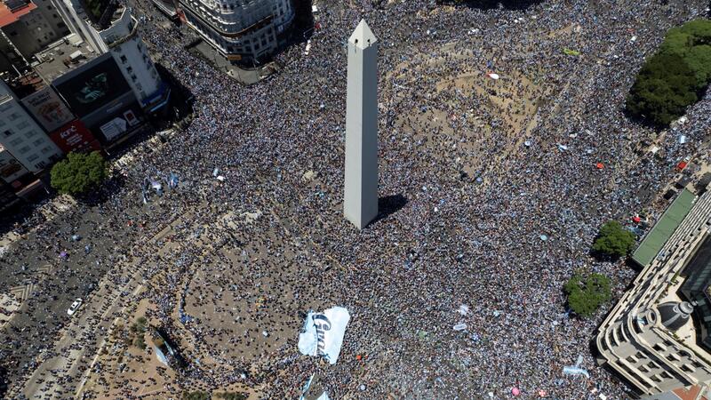 وطافت حافلة "آلبيسيليستي" في شوارع العاصمة الأرجنتينية بوينوس آيريس وسط اكتظاظ من المشجعين والمواطنين بأعدادٍ غير مسبوقة احتفالاً بإنجاز المنتخب التاريخي.