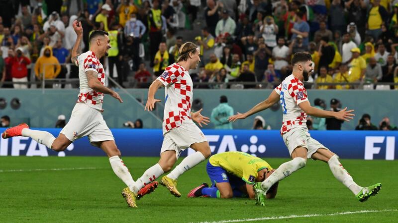 أطاح منتخب كرواتيا بنظيره البرازيلي من مونديال قطر 2022 بعد الفوز عليه بركلات الترجيح 4-2 عقب تعادلهما 1-1 في الزمنين الأصلي والإضافي من اللقاء القوي الذي جمعهما اليوم الجمعة على ستاد المدينة التعليمية.