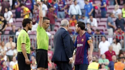 ولم ينسحب ميسي على الفور بعد الإنذار، وكاد يتطور الأمر وربما كان سيمنحه بطاقة حمراء لو واصل الاحتجاج قبل أن يتدخل مراقب المباراة كارلوس نابال لإقناع ميسي بترك الملعب.