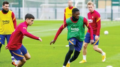 عثمان ديمبيلي خلال تدريبات برشلونة