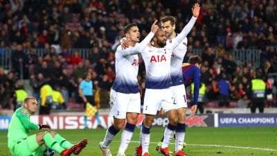 تعادل توتنهام هوتسبير الإنجليزي مع مستضيفه برشلونة الإسباني بهدفٍ لكلٍ منهما على ملعب كامب ناو لحساب المجموعة الثانية ليضمن بلوغ دور الـ 16 من دوري أبطال أوروبا على حساب إنتر الإيطالي.