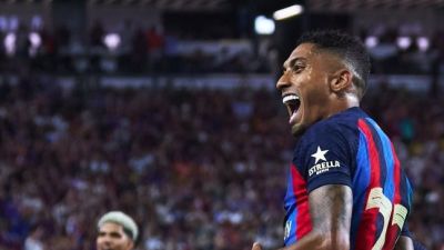 وتقدم البارسا بهدفٍ رائع إثر خطأ دفاعي فادح من المدافع البرازيلي إيدير ميليتاو الذي مرر كرة غير دقيقة لمنافسه ومواطنه رافينيا تعاقد البلاوغرانا الجديد.