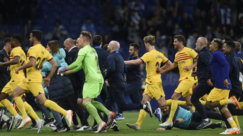 البوابة – أثارت جماهير إسبانيول الجدل خلال الساعات الماضية بعد نزولها للملعب وإفسادها لحظة احتفال لاعبي برشلونة بعد التتويج رسميًا بلقب الدوري الإسباني لموسم 2022-2023.