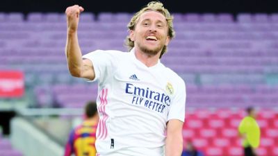خطف لوكا مودريتش لاعب وسط ريال مدريد الأضواء أمس بعد تسجيله هدفاً رائعاً في مرمى برشلونة خلال مباراة الفريقين أمس السبت.