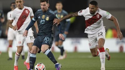 منتخب التانغو يتصدر الترتيب برصيد 9 نقاط وبالعلامة الكاملة بعد ثلاثة انتصارات متتالية على كل من الإكوادور وبوليفيا وباراغواي، أما المنتخب البيروفي يتذيل الترتيب ويحتل المركز التاسع في التصفيات برصيد نقطة واحدة فقط، ويبحث عن فوز على أرضه ينعش آماله بالمنافسة على بطاقة التأهل في أمريكا الجنوبية.