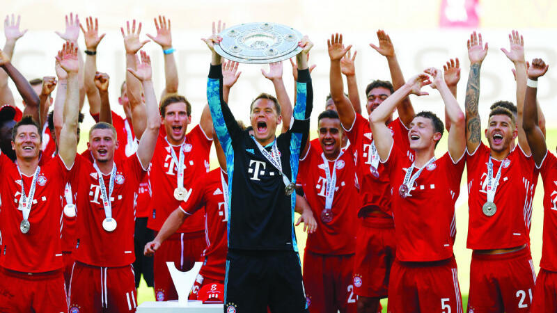 ورفع بايرن ميونيخ، المتوج باللقب منذ الأسبوع الماضي، في نهاية المباراة درع دوري الدرجة الأولى الألماني أمام مدرجات خالية بسبب جائحة فيروس كورونا.