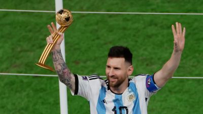 حصد ليو ميسي جائزة أفضل لاعب في مونديال قطر 2022، وذلك بعد أن تمكن من الفوز بكأس الذهب مع منتخب بلاده الأرجنتين، وأيضًا بعد أن سجل 7 أهداف خلال البطولة وكان على بعد هدف واحد لمعادلة رصيد مبابي الذي حقق 8 اهداف.