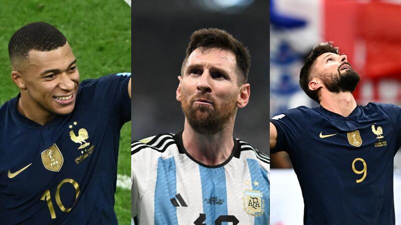 ويتنافس حاليًا من المنتخبات التي وصلت إلى نصف نهائي كأس العالم قطر 2022 ثلاثة أسماء على لقب هداف كأس العالم 2022، وهم كيليان مبابي، ليونيل ميسي وأوليفيه جيرو.