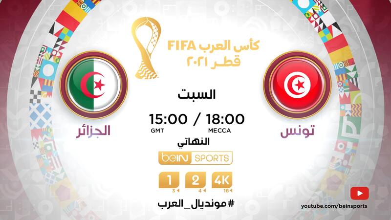 أعلنت مجموعة beIN الإعلامية، المجموعة العالمية للرياضة والإعلام والترفيه، عن خطتها لتغطية مباراة قطر ومصر لتحديد المركزين الثالث والرابع، والمباراة النهائية بين الجزائر وتونس في ختام بطولة كأس العرب FIFA قطر2021، يوم 18 ديسمبر، حيث ستقوم بتقديم تغطية حية ومباشرة مع نجوم كرة القدم والجمهور على مدار 11 ساعة على قناة beIN SPORTS 1.