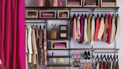 • إذا كانت الغرفة ضيقة، يُفضل أن تكون واجهة الخزانة عبارة عن ألواح من المرايا، لأن هذه الأخيرة تعكس الضوء، وتساهم في زيادة الشعور بالفسحة. ولتصميم جذّاب، يدخل الحديد المطروق (فيرفورجيه) أو لوحات القماش المنجد إلى إحدى درف الخزانة، شريطة اختيارها من نوع قماش الستارة أو أغطية السرير. كما يمكن أيضًا إدخال تصاميم من النحاس والحفر بحسب الرغبة.