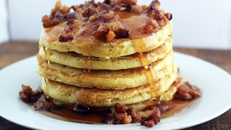 يوضع حوالي ربع كوب من الخليط في المقلاة ويخفف النار حتى تظهر ثقوب في الفطيرة.