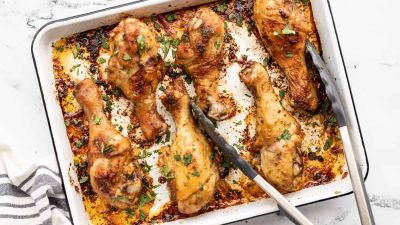 أفخاذ الدجاج المخبوزة بالفرن وصفة أفخاذ الدجاج المشوية بالفرن هي فكرة عشاء سهلة ومثالية يمكن إضافة توابلك المفضلة .