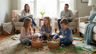 تُعدّ لعبة البحث عن البيض من أبرز تقاليد العيد، ويمكن تطويرها لتصبح أكثر تشويقًا عبر استخدام خرائط بسيطة أو تطبيقات حديثة لتوجيه المشاركين نحو أماكن البيض المخفي، مما يضيف روح المغامرة والحماس بين أفراد العائلة.