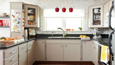 - عند اختيار اللون الأبيض للخزائن، يُحبَّذ تلوين المساحة التي تتوسطَّ الخزائن العلويَّة وتلك السفليَّة بأحد ألوان الباستيل (الأزرق أو الأصفر مثلًا)، أو بالرمادي أو بتدرجات الـ"كابوتشينو"، بهدف تحقيق التضارب بالألوان، ما يعكس جاذبية في الديكور.