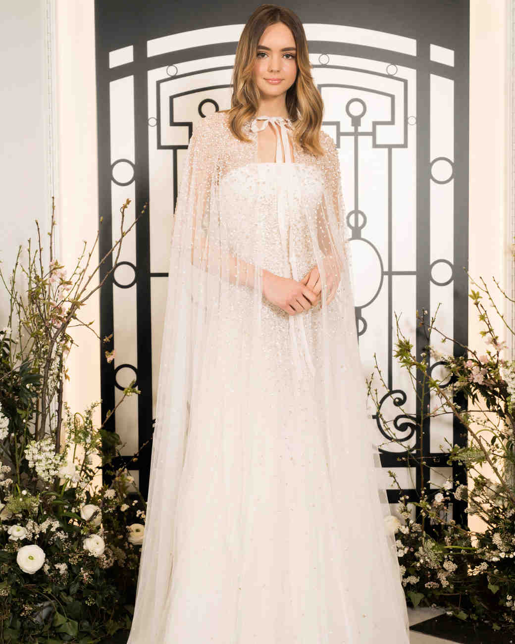 بالإضافة إلى ذلك، تميزت المجموعة بإضافة الكاب والريش إلى بعض التصاميم، مع التطريزات البراقة، وتصاميم قصيرة للعروس غير التقليدية.