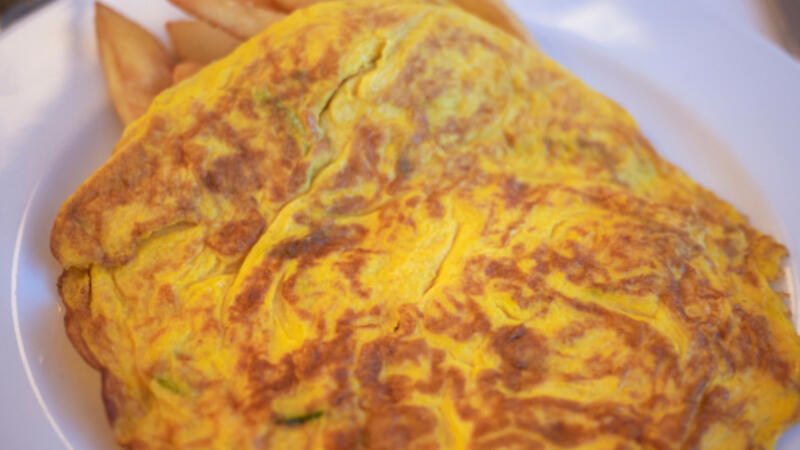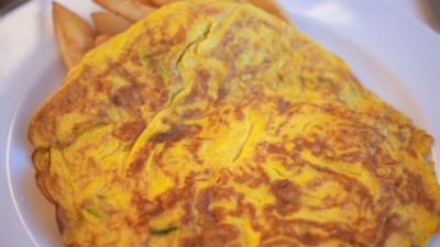 - ثم نضيف خليط الأومليت ويترك حتى يجمد ويحمر لونة من أسفل.