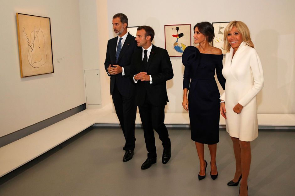 هما معتادتان على اللباس الأنيق الذي يخضع مباشرة للفحص والتحليل من قبل معجبيهم بالاضافة الى مجانين الأزياء. شيء واحد أكيد، وهو أن بريجيت ماكرون وليتيزيا ملكة اسبانيا حضرتا معاً برفقة زوجيهما لزيارة معرض الفنان الاسباني خوان ميرو في القصر الكبير LE GRAND PALAIS في باريس.