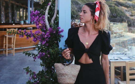 الطريقة الأحدث لارتداء الوشاح الحريري الآن هي بربطه على شكل عقدة نحيفة حول تسريحة ذيل الحصان الفوضوية، نسقيه مع تيشيرت أبيض، جينز وأحذية الباليه، لإطلالة أنيقة وهادئة.