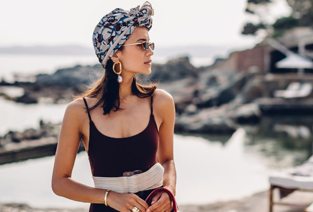 يمكنك ارتداء الوشاح الحريري على الشاطئ بطريقة التوربان، لكن هذه الطريقة تتطلب منك القليل من الثقة، ويفضل تنسيقه مع البيكيني بالألوان المحايدة والأقراط المميزة.