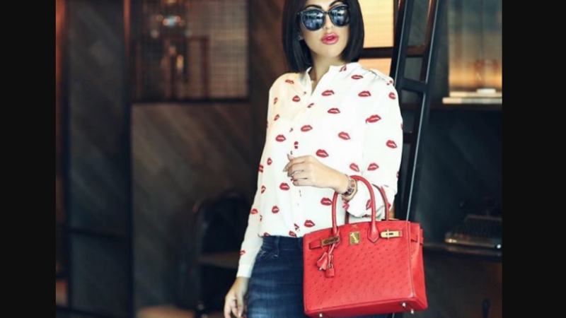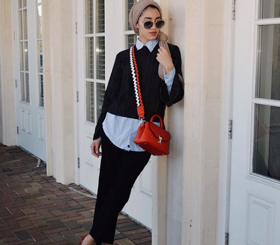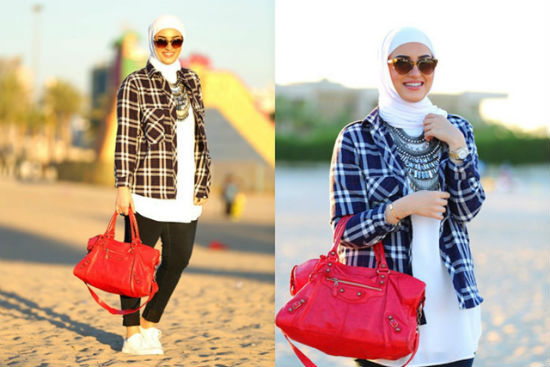 "سالي عاشور" اختارت حقيبة اليد الحمراء الرياضية المعلقة في الكتف بشكل عصري، وهي الحقيبة الأكثر اعتماداً عند محجبات انستقرام المعاصرات للموضة خصوصاً في حياتهن اليومية.