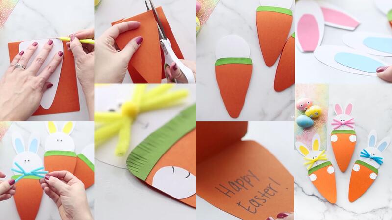 افتح الجزرة لتكشف عن رسالة عيد الفصح الخاصة بك في الداخل. اكتب Happy Easter أو رسالة الى الجد والجدة على البطاقة .