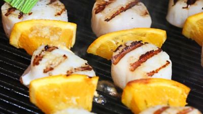 اسكالوب مشوي مع شرائح البرتقال، وصفة رائعة ليوم الاجازة، شواء شهي وصحي...
