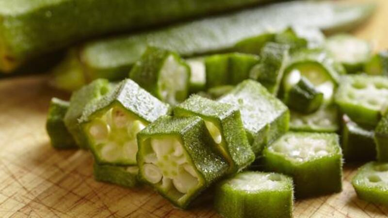 تقطع البامية الى شرائح طازجة أفقيا.