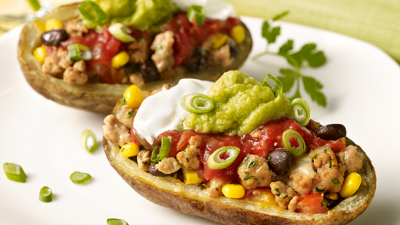 6. اسكبي الصلصة على وجه البطاطا ثم شاركيها على سفرتك مباشرة.