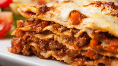 اللازانيا هو أحد الأطباق الشهية وسريعة التحضير والمشهورة في المطبخ الإيطالي، وهي من أفضل الأطباق الجانبية أو الرئيسية في بعض الأحيان، وتحتوي على نسبة من الدهون والسعرات الحرارية التي تمدّ الجسم بالطاقة اللازمة ويتميز بطعمه اللذيذ وقيمته الغذائية العالية، فهو مصدر للبروتين الحيواني لاحتوائه على اللحم، كما ويشمل هذا الطبق صلصة البشاميل المحبّبة عند الكثيرين.
