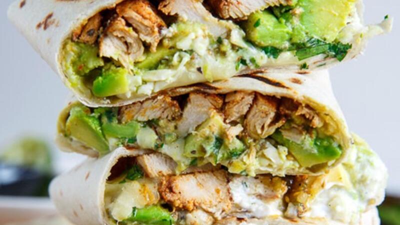 البوريتو ساندويتش محشوة بالدجاج، والأفوكادو، والجبن، والسالسا الحارة والقشدة الحامضة!