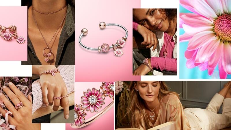 أطلقي العنان لإبداعك مع مجموعة مجوهرات زهور الأقحوان بدرجات اللون الوردي، أضيفي حُلي الأزهار إلى Pandora O Pendant أو صممي مظهرًا مؤثرًا مع الأيقونات الربيعية. يمكنك أيضًا استخدام زوجين من خواتم الزهور على أصابعك.
