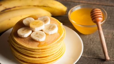 6- قدمي البان كيك مع الزبد غير المملح والموز.