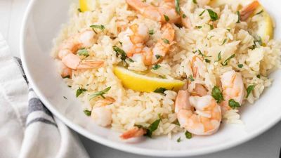 باييا الروبيان بالأرز والليمون والثوم