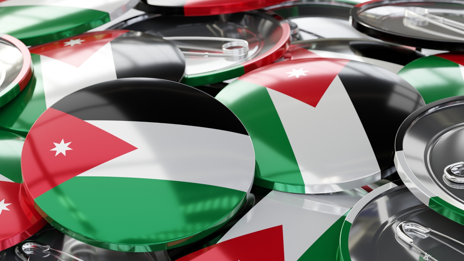 - بروش مكتوب عليه "الأردن" أو "علمنا فخرنا" مع دمج رموز وطنية بسيطة.