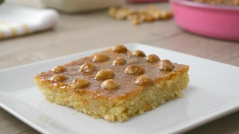 هل تحبين الحلويات الشرقية؟ لما لا تجربي طبق البسبوسة بالكريمة والبندق، سريعة وسهلة ولذيذة...