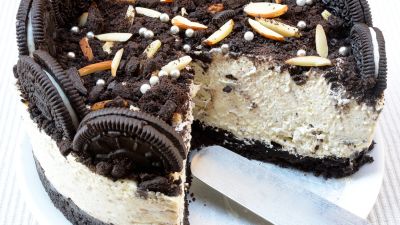 6. ضعي طبقة من الأوريو المفتت ثم طبقة من خليط الجبن الكريمي وثم طبقة أخرى من الأوريو ثم الكريمة حتى نفاذ الكمية يمكنك عمل من 3 إلى 4 طبقات.