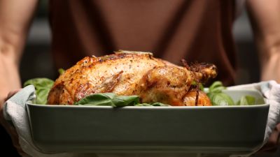 - لإكسابه مذاقاً شهياً، ادهن الديك الرومي من الخارج بالسوائل التي تخرج منه من حين لآخر أثناء شوائه.