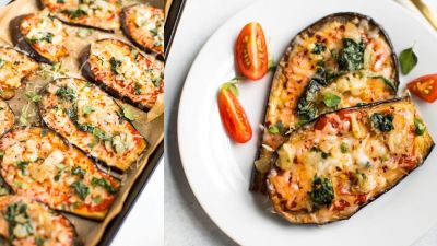 وصفة بيتزا الباذنجان المنخفضة الكربوهيدرات مذاق ونكهة رائعة، هذه الوصفة نباتية مناسبة للنباتيين.