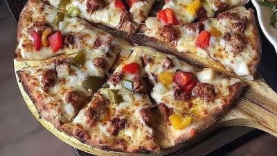 طريقة تحضير بيتزا الدجاج مع فلفل ألوان كالمطاعم