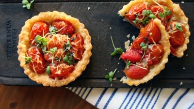 تارت الطماطم البسيط اللذيذ مع البصل المكرمل والجبن.