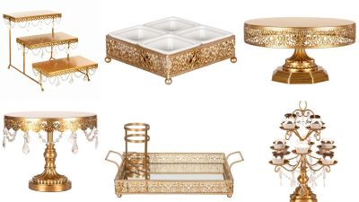 الطبق الذهبي بقلائد الكريستال مناسب ليكون طبق رئيس لتقديم كعك العيد.
