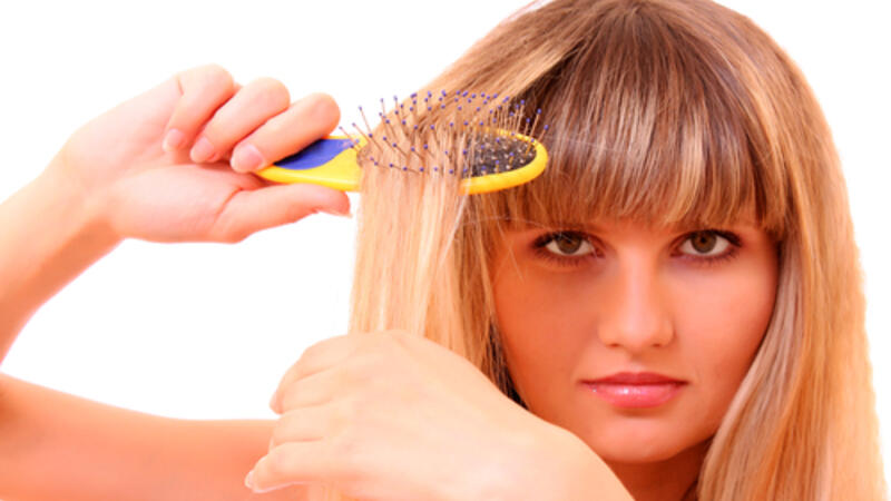 6- إبحثي عن المنطقة التي توجد فيها العقدة في الشعر، ثم حاولي تمشيطها بحذر بإصابعك لفكها بعض الشيء بواسطة مشط واسع الأسنان حتى تتفكك العقدة.
