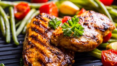هو طبق مثالي للريجيم مكون من الدجاج والخضار. يكفي سلق الخضار ومن ثم شيها وإضافة الصلصة إليها. يمكن إضافة المزيد من أنواع الخضار حسب الرغبة.