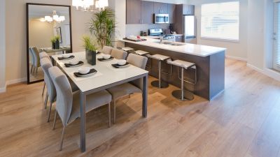 7- في غرف الطعام صغيرة المساحة يمكنك استخدام طاولات الطعام التي يمكن ضمّها وفتحها لتوفير المكان.