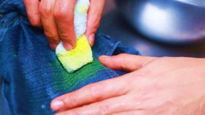 3. يوضع سائل الجلي على البقعة، مع نقع الثوب في ماء ساخن، مضافًا سائل الجلي إليه. وفي هذا الإطار، يجب التحقق من رموز الغسيل الموجودة على الملصق، لمعرفة درجة حرارة الماء الموصى بها.